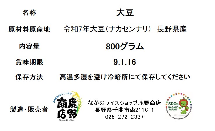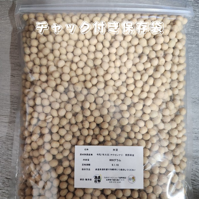 【信州直送】令和7年長野県産大豆「ナカセンナリ」800g保存に便利なチャック付!